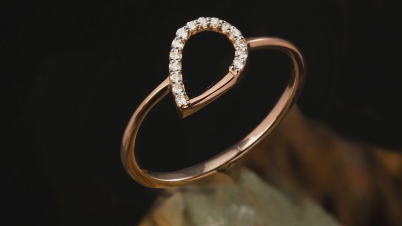 A graceful dew drop–shaped head sparkles with the fire of fifteen brilliant diamonds, each meticulously set to reflect light from every angle. Symbolizing purity, renewal, and beauty in its most delicate form, this ring blends organic elegance with timeless luxury — a radiant droplet of nature’s charm.